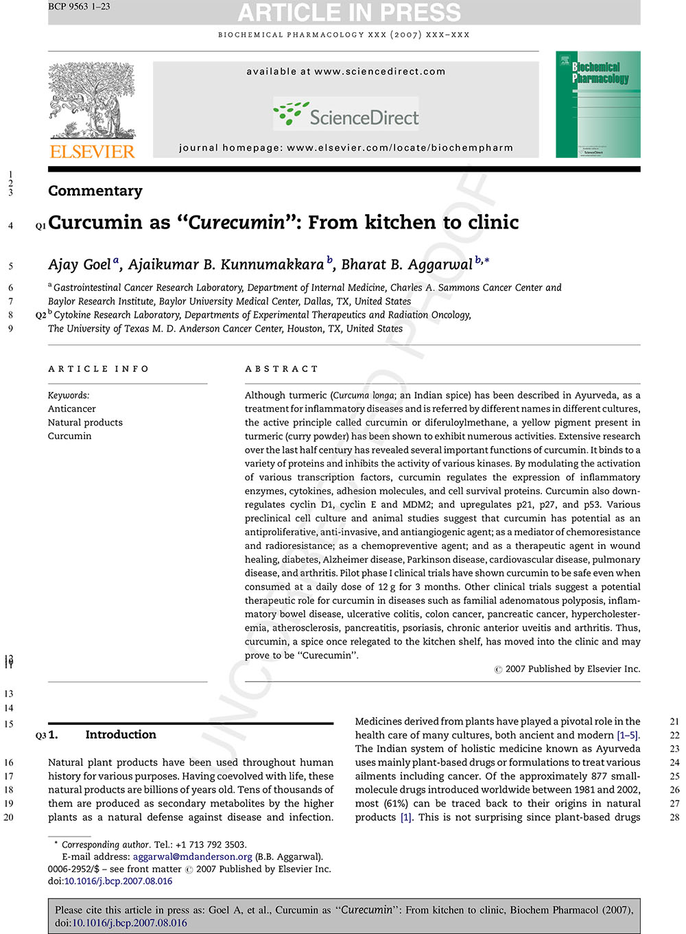 Curcumin as ‘‘Curecumin’’: From kitchen to clinic