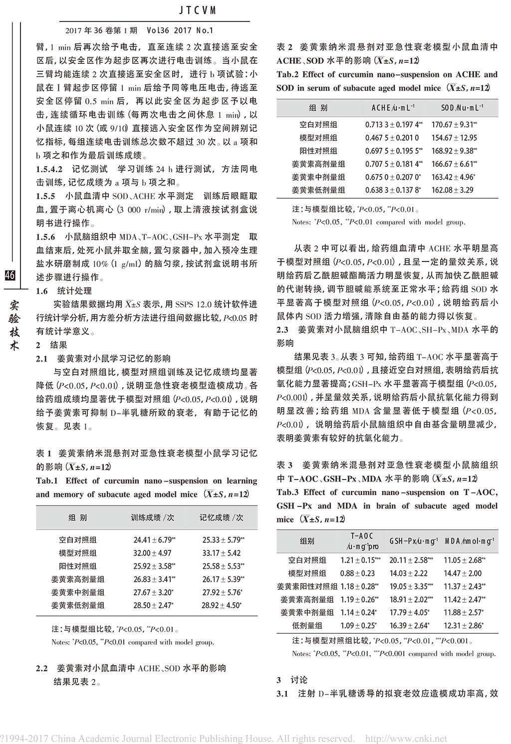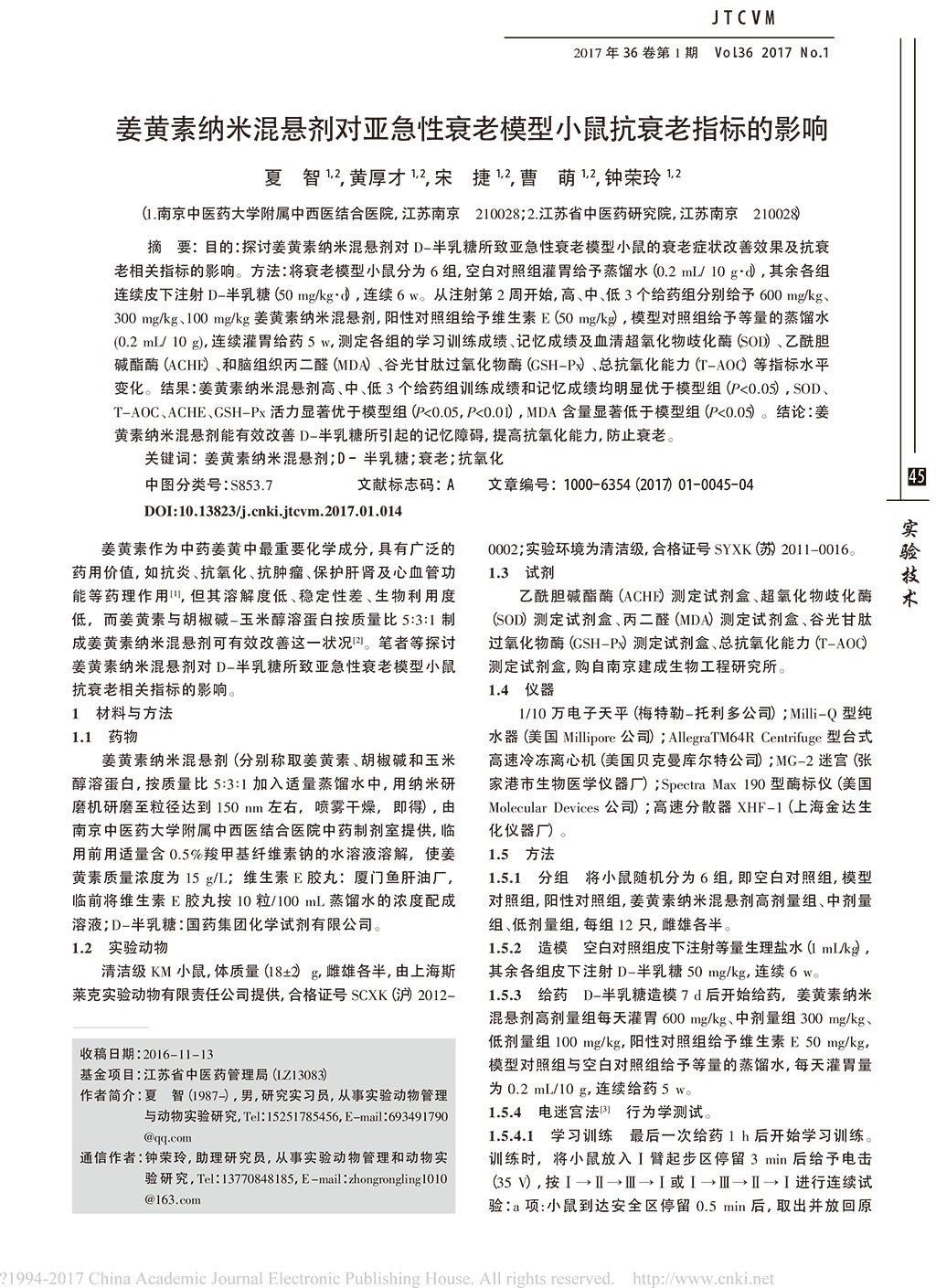 姜黄素纳米混悬剂对亚急性衰老模型小鼠抗衰老指标的影响_夏智