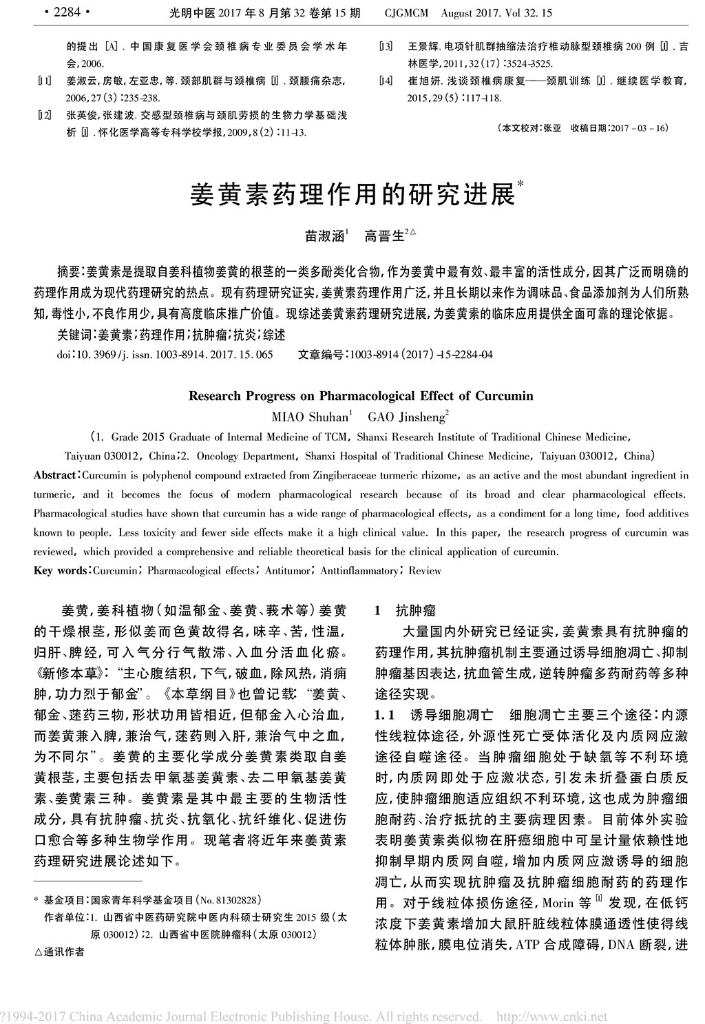 姜黄素药理作用的研究进展_苗淑涵
