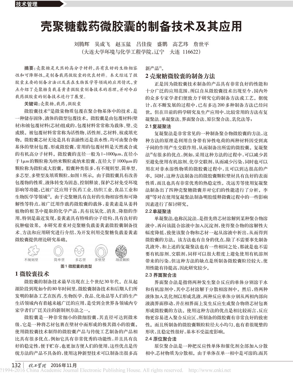 壳聚糖载药微胶囊的制备技术及其应用_刘腾辉