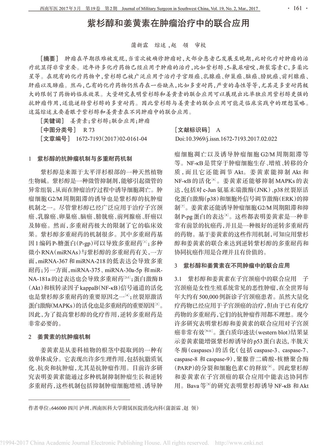 紫杉醇和姜黄素在肿瘤治疗中的联合应用_蒲新霖